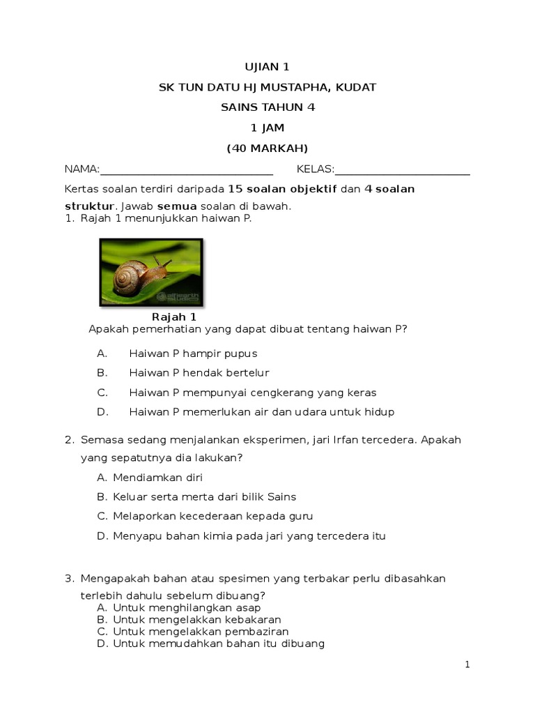 Bank Soalan Sains Tahun 4 Sjkt Neptunalex from 4.bp.blogspot.com Jangan buka kertas soalan ini sehingga diberitahu 1. Soalan sains tahun 4 kertas 1 2. By hafizuddin daud 33388 views. Baca soalandenganteliti bahagian a kertas soalan ini mengandungi 8 halaman bercetak 1 1. By mohammad asyraf 409518 views. Mengapakah kamu perlu mematuhi peraturan bilik sains? Soalan dalam bahasa inggeris mendahului soalan yang sepadan dalam bahasa melayu. Kertas peperiksaan ini adalah sains untuk murid darjah 4 mengikut kurikulum standard sekolah rendah (kssr).